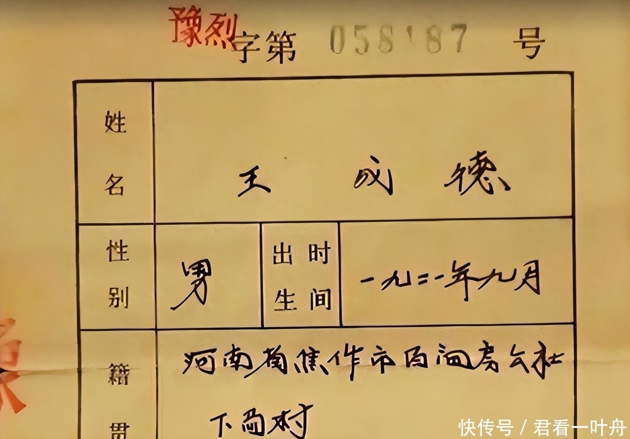 母亲苍白瘦弱的手发出剧烈地颤抖,一点一点小心翼翼地打开这个珍藏多年的布包,里面是父亲王成德的照片和烈士证明。